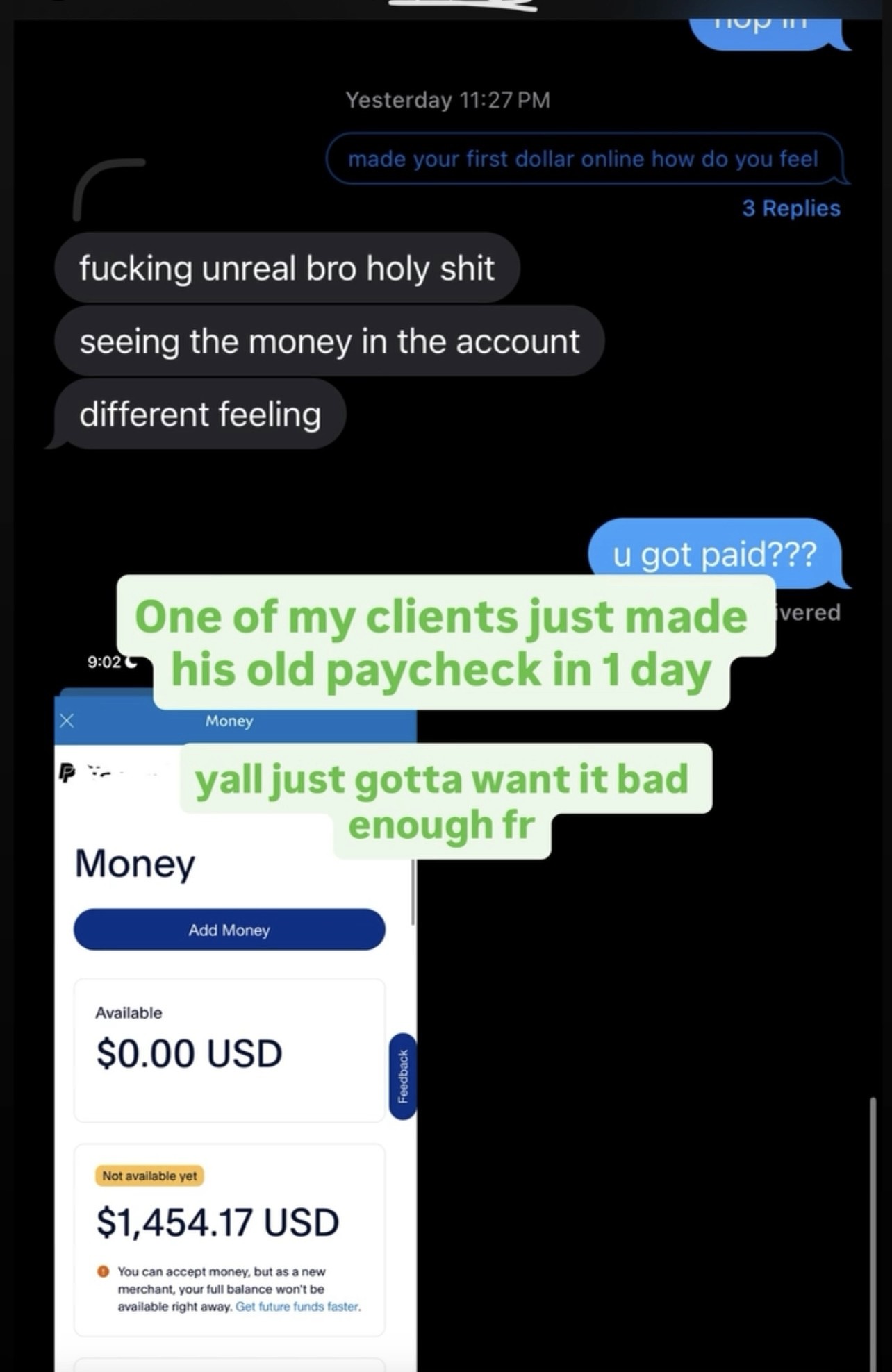 Hear directly from the students who used this exact system to close their first deals — and scale way past $10K/month.